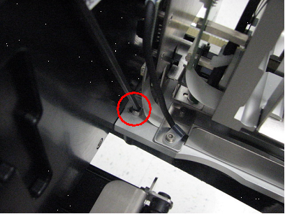 Completely open the MTU Input Queue drawer to expose the center screw. Remove this screw.
