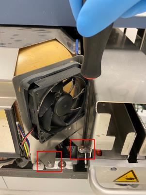 Using a 4 mm hex key, remove the front and rear screws from the MTU
