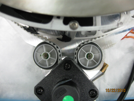 With the Incubator assembly right side up, orient the belt, pulley bearings, and the motor.
