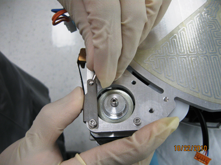 Remove the motor insulation cover and raise the Incubator cover to expose the tensioner pulley.