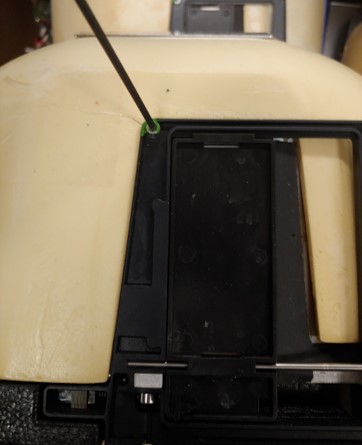 Remove the door sensor cable connection. Thread the cable through the opening in the foam.