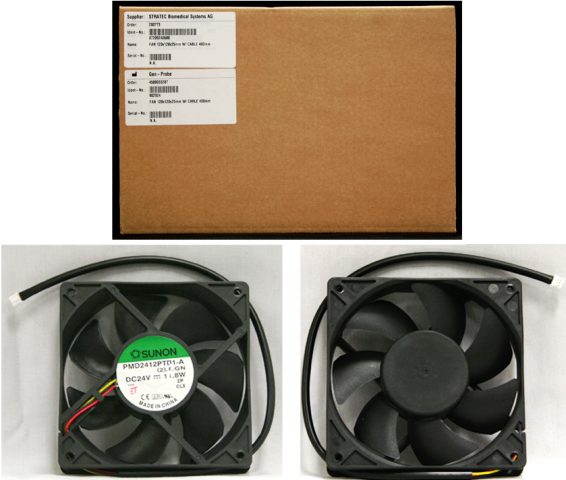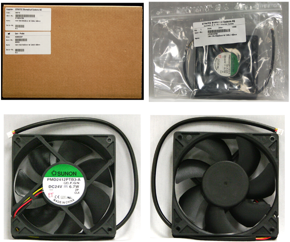 Insert and tighten the four 3 mm screws that secure the fan, and make sure that each screw has a washer between the fan and the metal plate.- Reinstall the incubator cap.