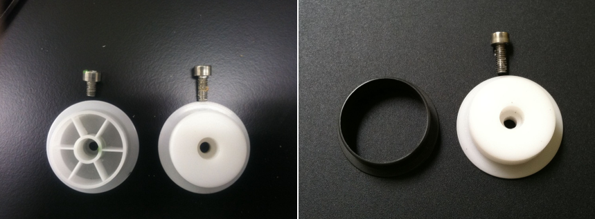 Obtain a new pulley kit (new pulley and M4 x 10 screw).- Using the original pulley bearing (grey), install the new pulley but do not tighten.
