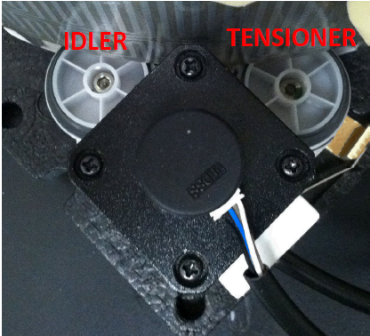- Remove the motor insulation cover and raise (or remove) the Incubator cover to expose the tensioner pulley. (Remove the electrical tape, if necessary.)