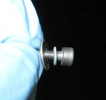 Using a 2.5 mm Allen Wrench, carefully remove the screw securing the Hook Flex cable to the hook. Note that there are 2 washers on the screw.- Remove the Hook Flex Cable.