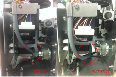 If installing the newer style distributor, see section Distributor Model Information, verify the gray Theta Motor cable is routed to the side of the Z-axis motor. If the cable is routed underneath the motor it may snag as the distributor head moves upward. If necessary, loosen the appropriate cable ties and adjust the cable to allow free movement when the distributor head is moving in the Z direction.