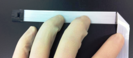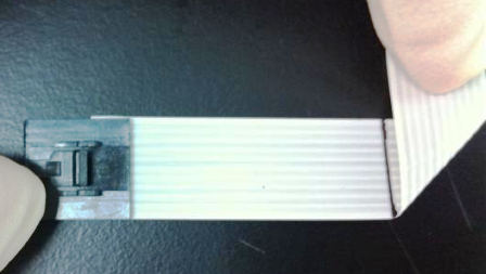 Note—When folding the flex cable, do not make a hard crease. Leave the bend slightly rounded (~1 mm end radius). If the bend is creased, the flex cable is likely to break.