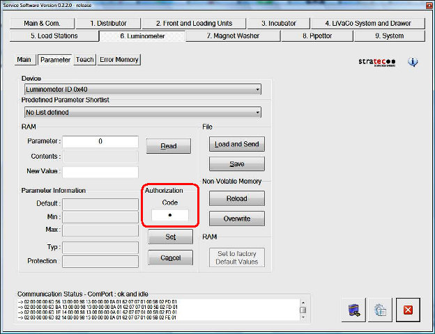 In the Authorization/Code field, enter 1.