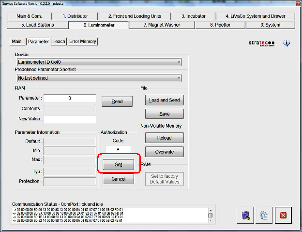 Click Set.- Close Service Software.
