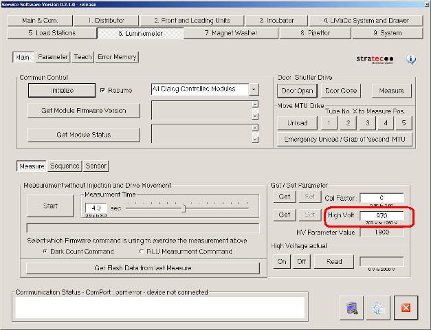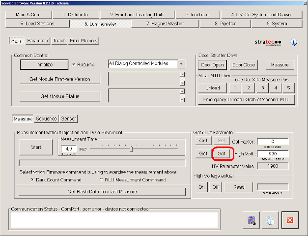 In the Get/Set Parameter section, enter the High Voltage value in the High Volt field.