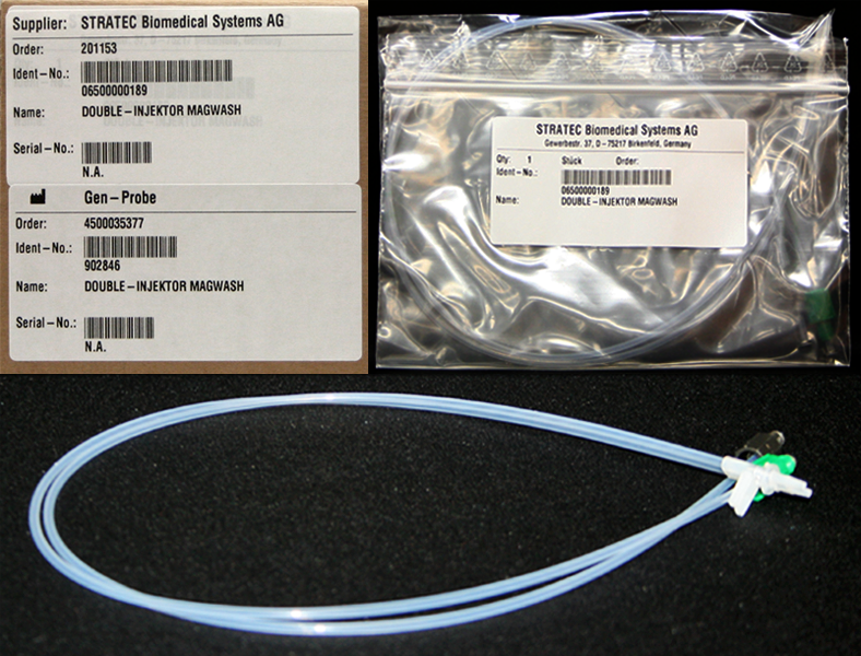 Multi-tube unit—Container used to process tests in the instrument. An MTU contains five separate reaction tubes. The MTU is moved through the instrument by the linear distributor and includes five tiplets for pipettiing to be used in the mag wash station. into the module and position it under the injectors to capture any fluid that is retained in the injector line.