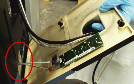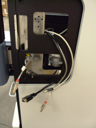 Note—The monitor has a cable that dangles from it that is not plugged into anything. This cable is used to set up the monitor. It should be available in case the monitor requires adjustments in the future.