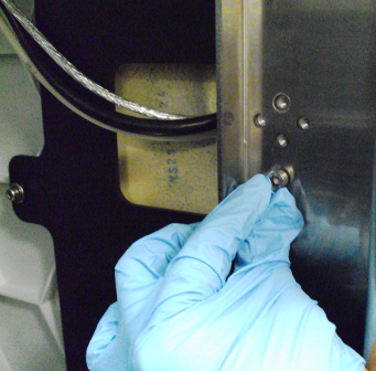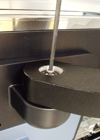 Secure the monitor arm bracket from the inside of the Panther System using the five screws and a hex key.