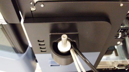 Remove the monitor arm cap cover to expose the 4 mm screw.