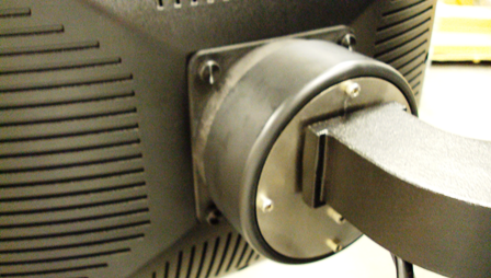 Using the four back knobbed screws, secure the monitor to the monitor arm.