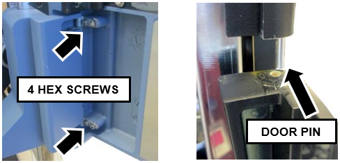 Tilt and slide the TCR Door away from the Panther System to remove it from the door pin (the pin may look different than pictured below).
