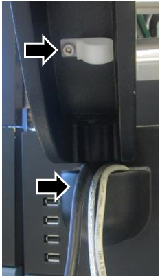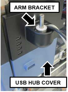 Pull off the USB Hub Cover and let it hang loosely on the arm bracket. (The USB Hub Cover is a "press-fit" cover, no screws.)