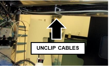 Unclip the cables along the frame above the TCR Carousel all the way back to the corner, the cables will hang down out of the way by the top corner of the Pumps Module.