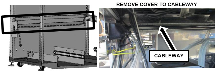 - Finalize the cable routing across the back of the Lower Bay (ensure all cables are in place and connected, all clips are re-attached) and re-install the plastic cover over the cableway.