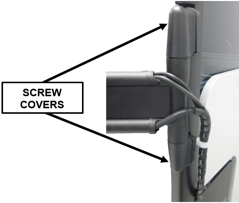 Note—Save the plastic cable clips and screws from the old monitor arm for cable dressing the new cables. - Take off the cap cover at the base of the monitor arm.