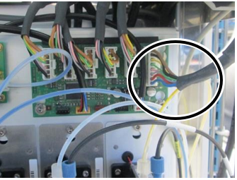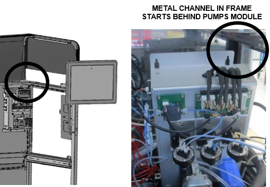 Route the new cables behind the Pumps Module and into the channel in the frame. Follow the same path as the old cables.