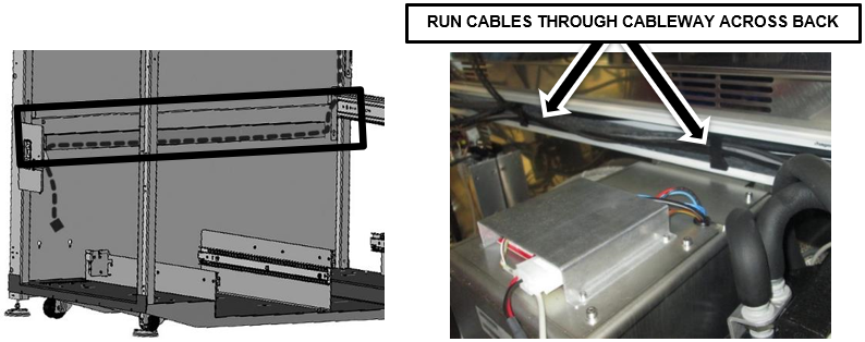 Pass all the ends of the new cables over the Computer Bay. Gather the new and existing cables and place them into the beginning of the cableway behind the UFD Drawer as shown below.