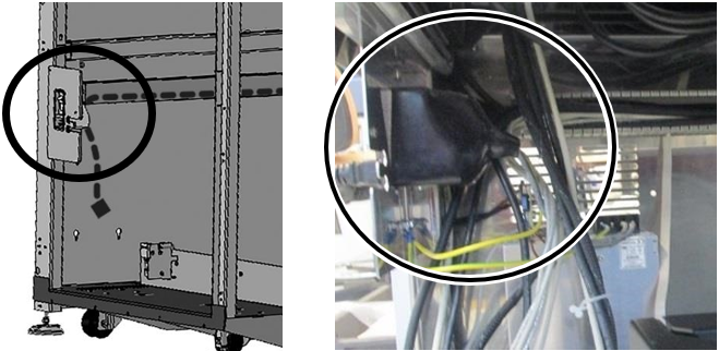 At the back of the Computer Bay, route the new cables coming out of the cableway in the same way as the other existing cables. They should run behind the power supply plug. Unclip and re-clip existing clips as needed.