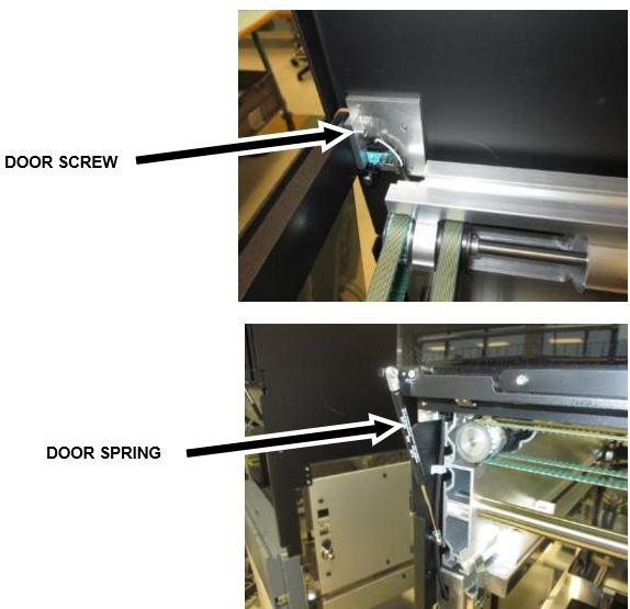 Re-install the TCR Door using the four 2.5mm hex screws that hold the door on its hinges. Tilt and slide the TCR door upwards to re-engage the pin.