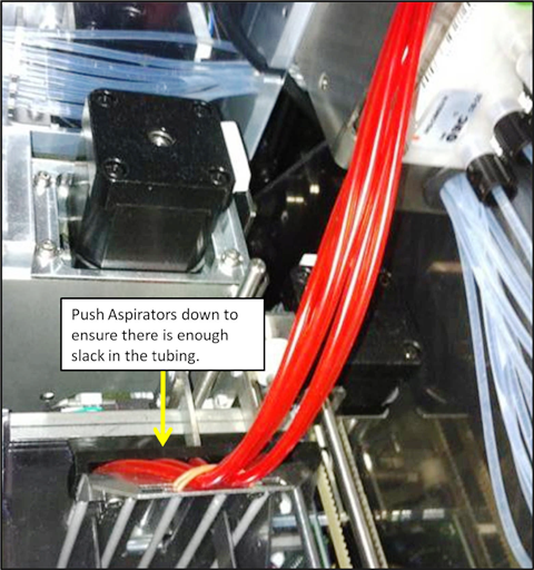 - Ensure the OQ Aspirators have full range of motion by moving the aspirator assembly up and down by hand.