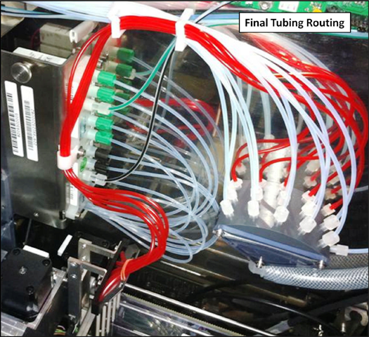 - The red aspirator tubing needs to be re-routed so that it will not interfere with the Guide Flap.
