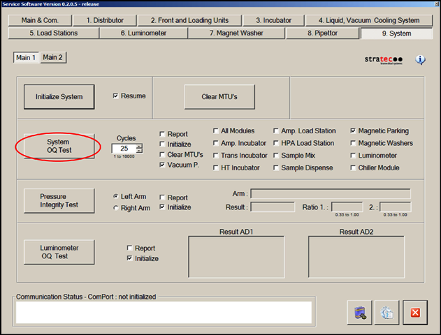 - In the System tab, perform a System OQ Test.