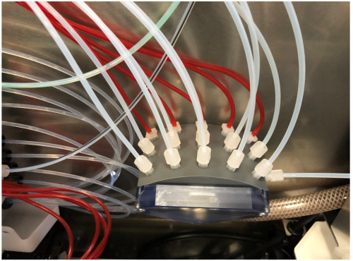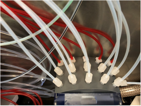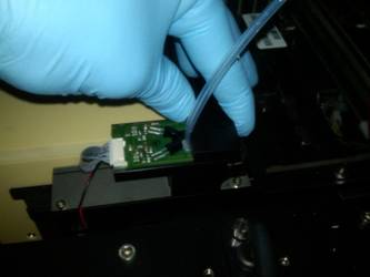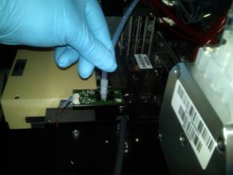Remove the RED Aspirator Tubes from the barb fittings at the vacuum manifold and secure tubing for removal. Or Unscrew the barb fittings with the RED Aspirator Tubing attached.