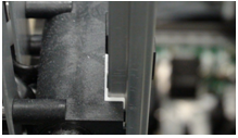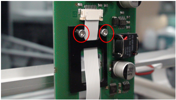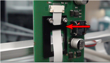 - Attach the flex cable to the Y-sledge PCB, making sure the flex cable contacts are facing away from the PCB. Ensure that the cable is fully seated into the ZIP socket and secure the clamp by carefully pushing both tabs in at the same time.