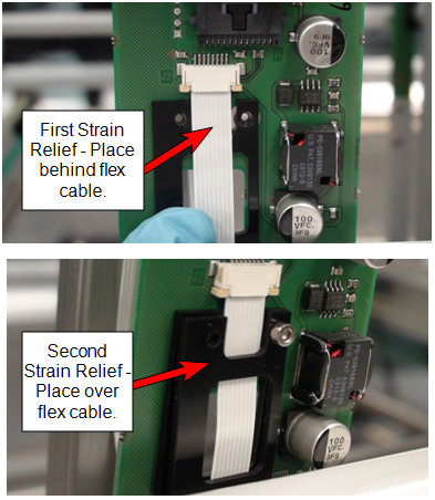 - Secure the flex cable strain relief via the cable retention bracket.