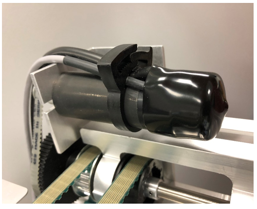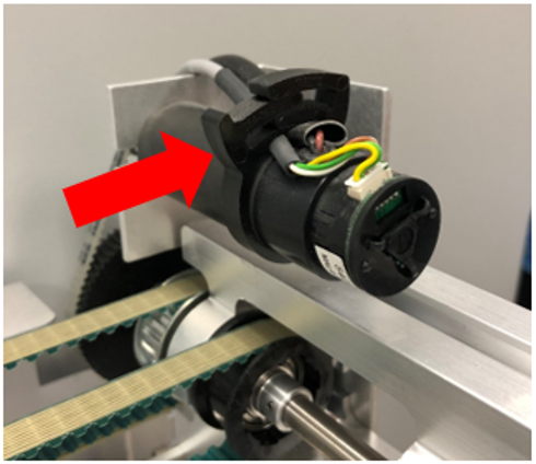 Install the Encoder Cap, by pressing on the cap so that the cap covers the encoder cable and motor power cables.