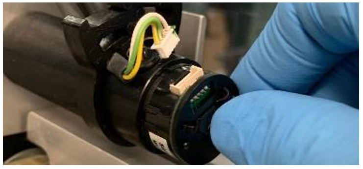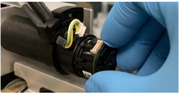 The harness would need to be removed ONLY if it is difficult to install the Encoder Cap.- Disconnect the encoder cable from the X- Axis motor.
