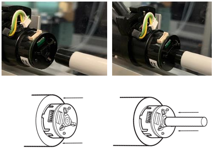 Install the Encoder Cap, by pressing on the cap so that the cap covers the encoder cable and motor power cables.