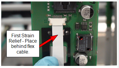Remove or loosen the flex cable strain relief on the pipettor main PCB for easy removal of the flex cable.
