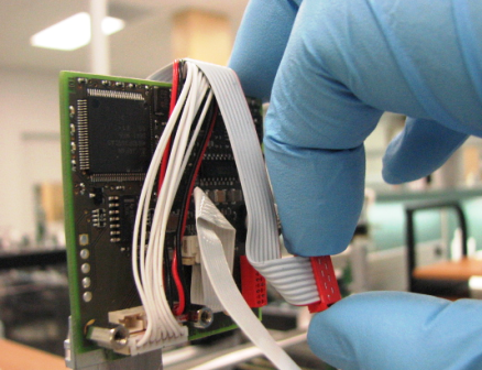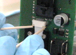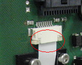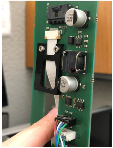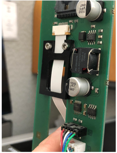 This will release the flex cable from the pipettor main PCB.- Pull the cable down and out of the connector clamp.