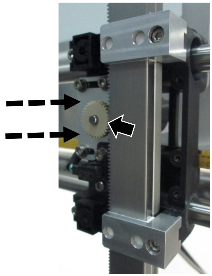 Press LIGHTLY on the Z-motor to mesh the teeth on the motor gear with the teeth on the pipettor arm, then tighten the 3 motor screws. The Shim Tool will ensure proper meshing of the Z-motor (not too tight or loose).
