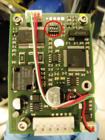 Note the positions of the pump DIP switches.- Carefully remove the LCMP.
