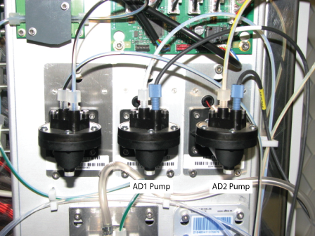 The AD1 Pump is located on the left and the AD2 Pump is located on the right, closest to the right cover.
