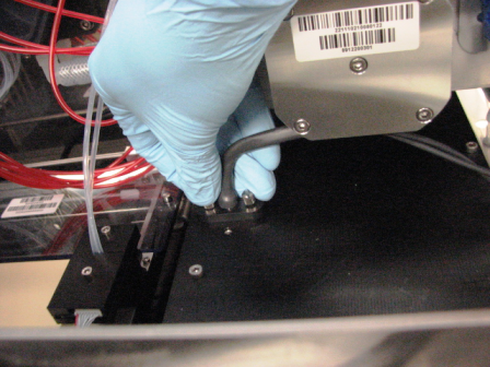 - Place the Luminometer injector back into the Luminometer module and finger-tighten the screws.