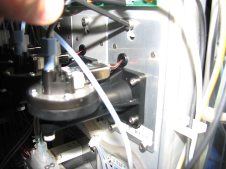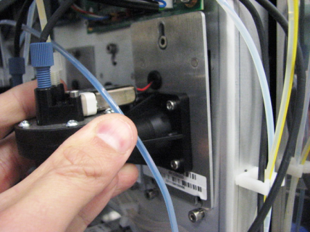 Unscrew and remove the Luminometer injector fittings from the Auto Detect 1 and/or 2 pumps.