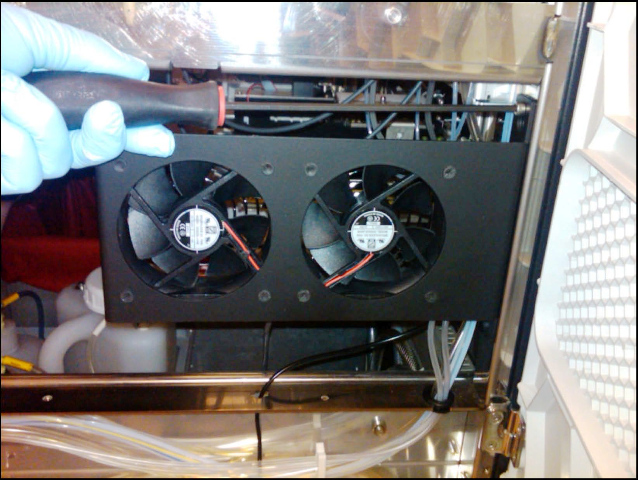 Using a 4 mm Allen wrench, remove the right chassis fan assembly.