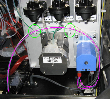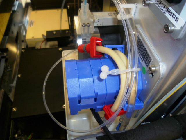 Verify the Peristaltic Pump tubing is routed as shown in the following photo.