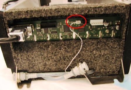 Disconnect the thermistor connector from the PCB on the rear of the module.