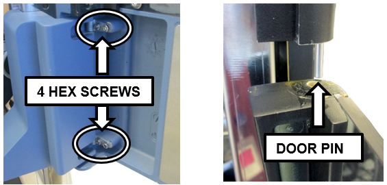 - Open the TCR Door and remove the four 2.5 mm hex screws that hold the door on its hinges.