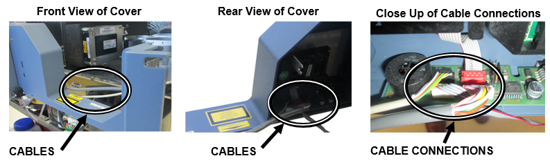 Disconnect all 3 cables inside the front cover.