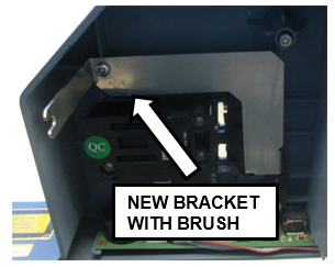 Slide the front cover back into place. Ensure the bracket arm (new brush) slides into the 2.5 mm bracket hex slot screw.